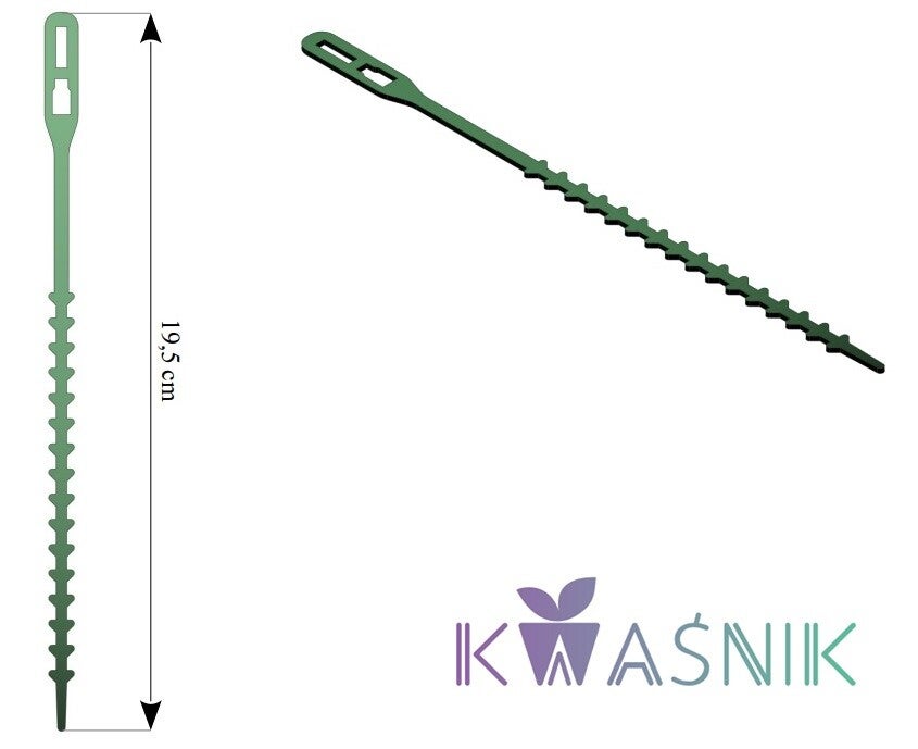 Zestaw zawiera 100 szt. zielonych WIELOKROTNEGO UŻYTKU opasek zaciskowych do roślin o długości 19,5 cm.